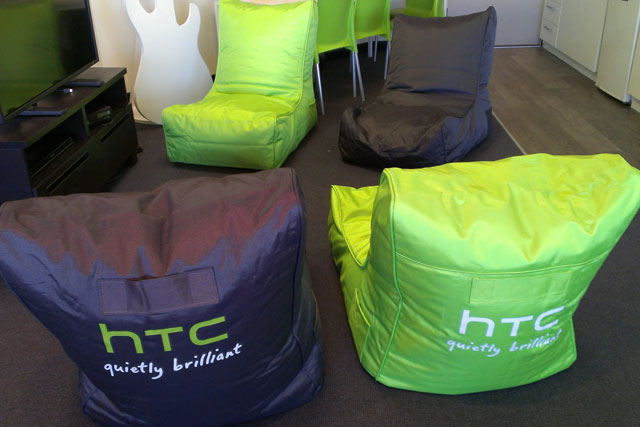 HTC brands up some Ambient Lounge Bean Bags to create a beautiful breifing area in the Melbourne head office. Employees can now relax while getting updates about the latest HTC innovations.