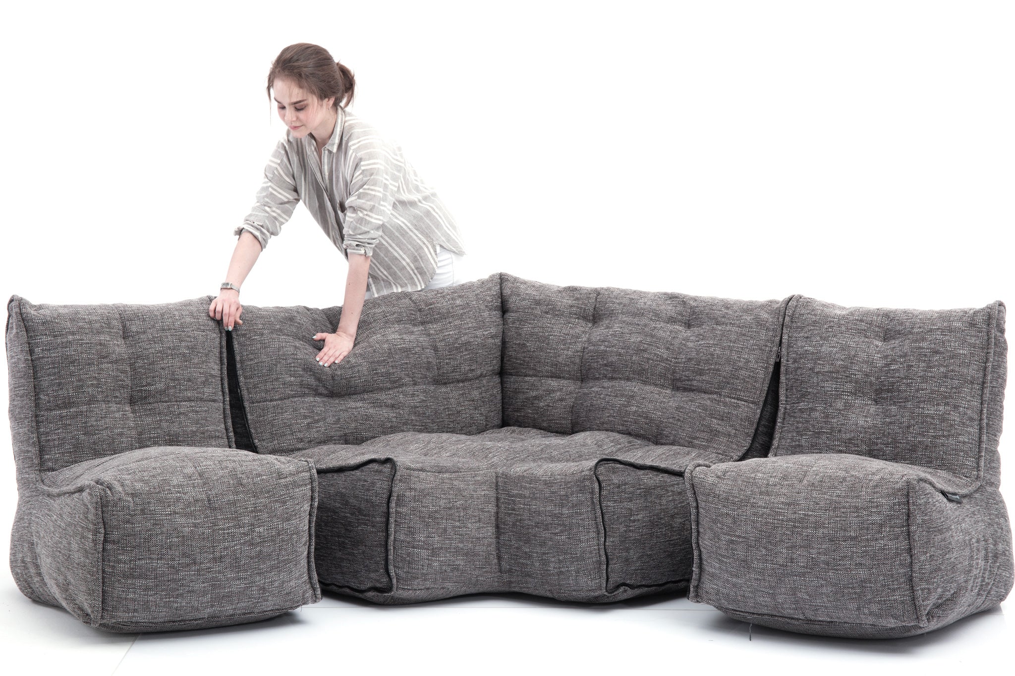 Maximize your corner space with the MOD 3 Cozy Corner in Luscious Grey. The interwoven silver and deep grey tones add a premium touch to any nook. As a sumptuously soft fabric, it provides an intimate, lovely feel against the skin - perfect for a high-end reading corner in a modern Singaporean apartment.