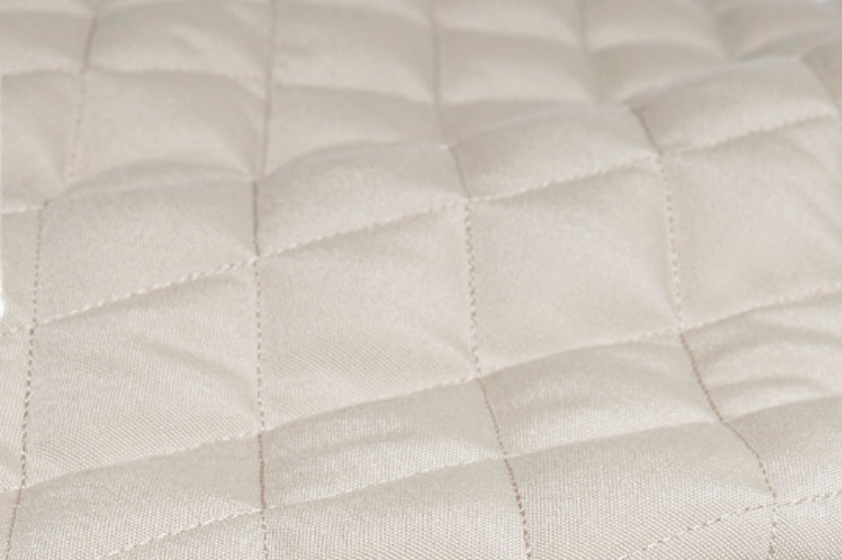 CoolQuilt top: Beige quilted solution-dyed water-resistant fabric that is soft and smooth. Back pocket allows for a cooling gel pack (not included) for enhanced cooling on hot days.
