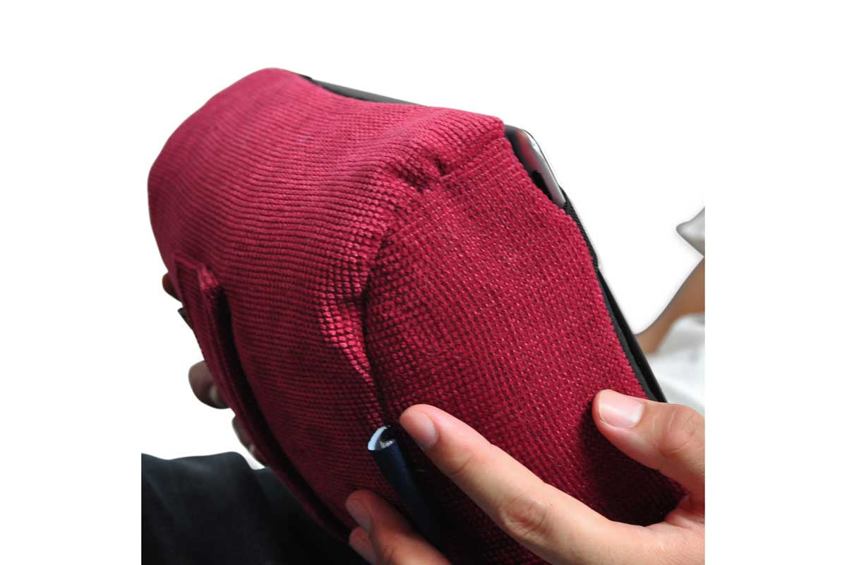 A must-have accessory in luxurious red fabric and special micro bead filling, this 3-in-1 designer iPad case is ingenious geek chic.