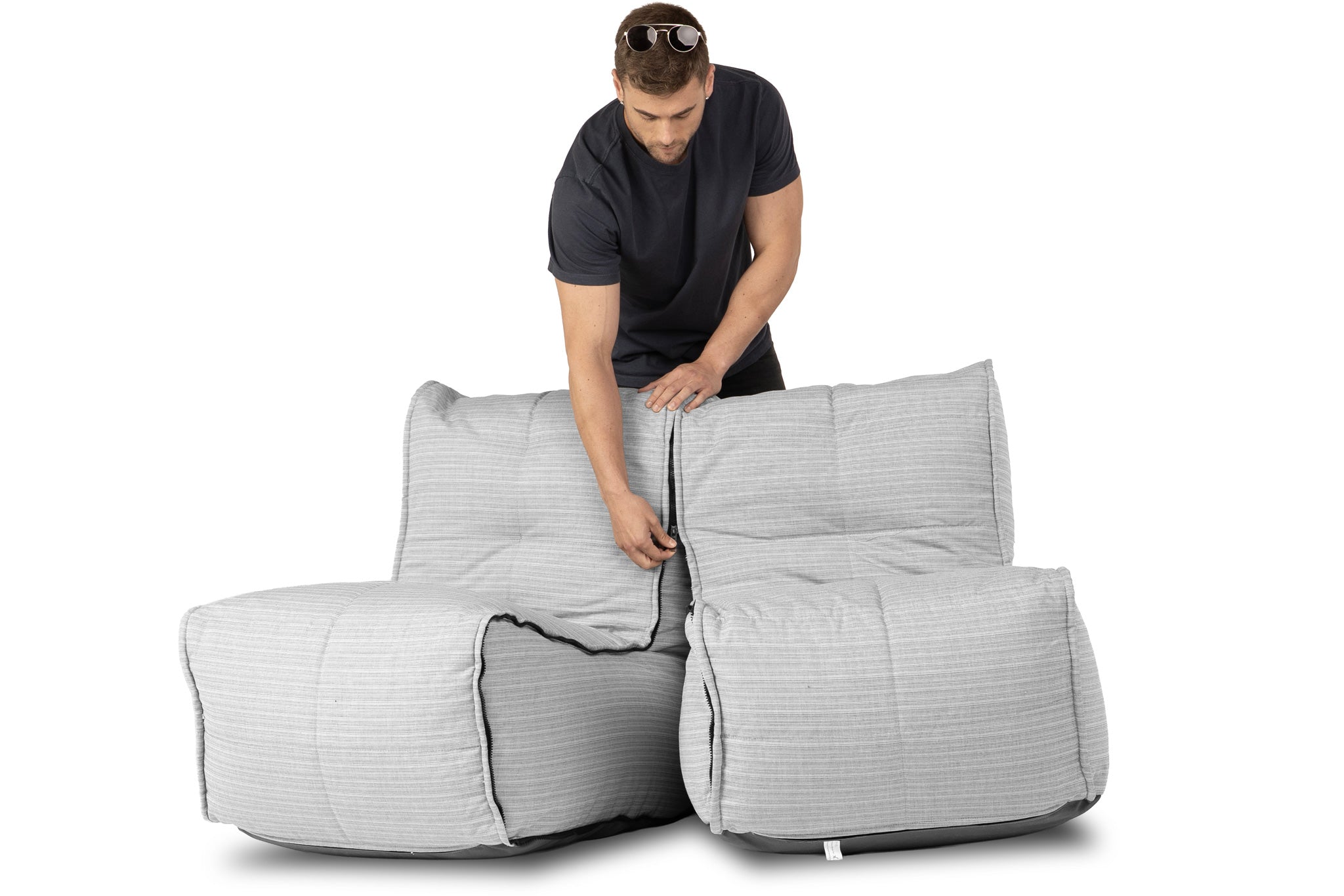 Twin Couch Bean Bags in Silverline (Easy-Clean, Pet-Friendly, In/Outdoor)