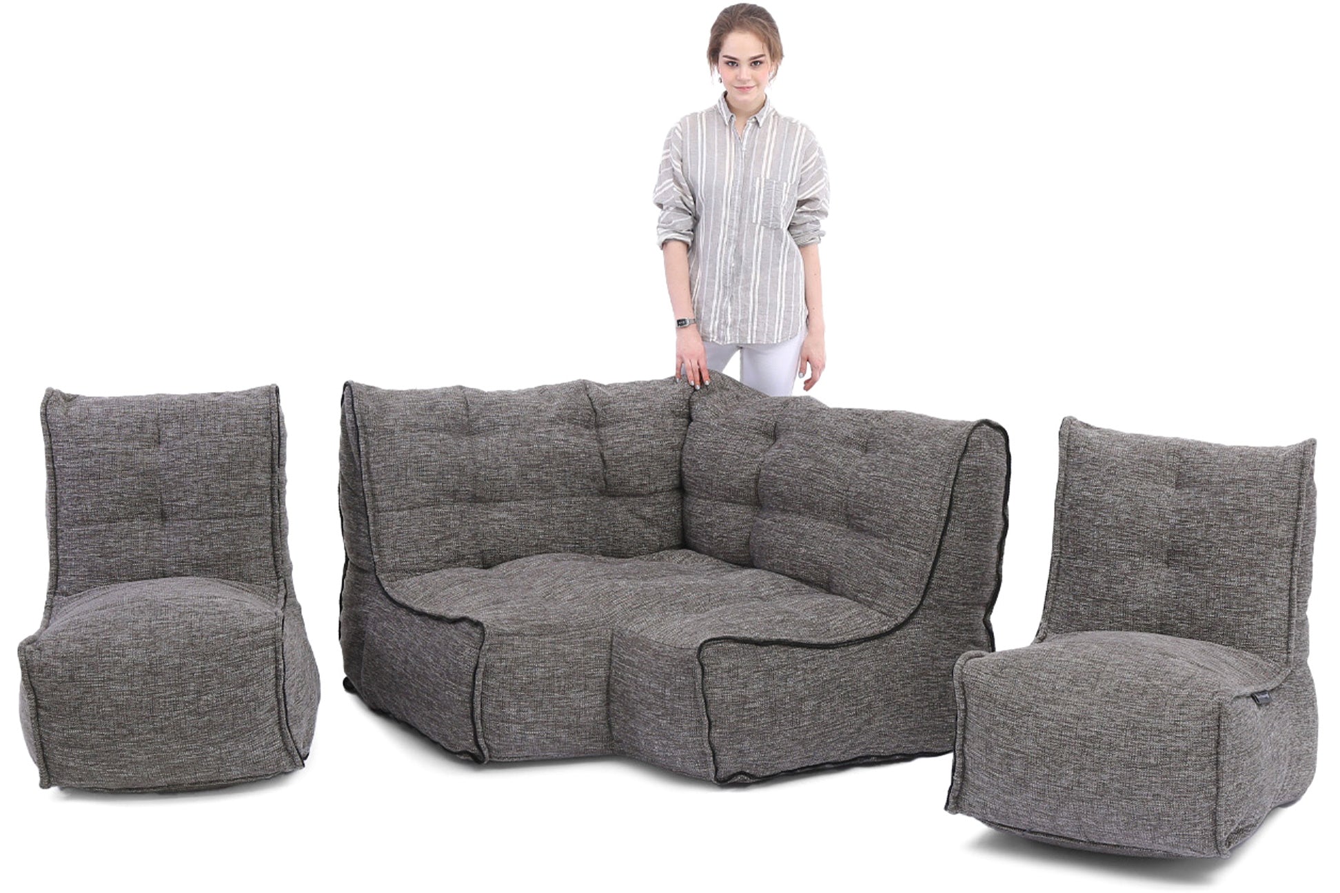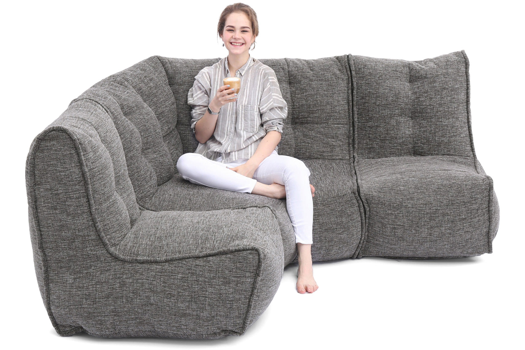 Maximize your corner space with the MOD 3 Cozy Corner in Luscious Grey. The interwoven silver and deep grey tones add a premium touch to any nook. As a sumptuously soft fabric, it provides an intimate, lovely feel against the skin - perfect for a high-end reading corner in a modern Singaporean apartment.