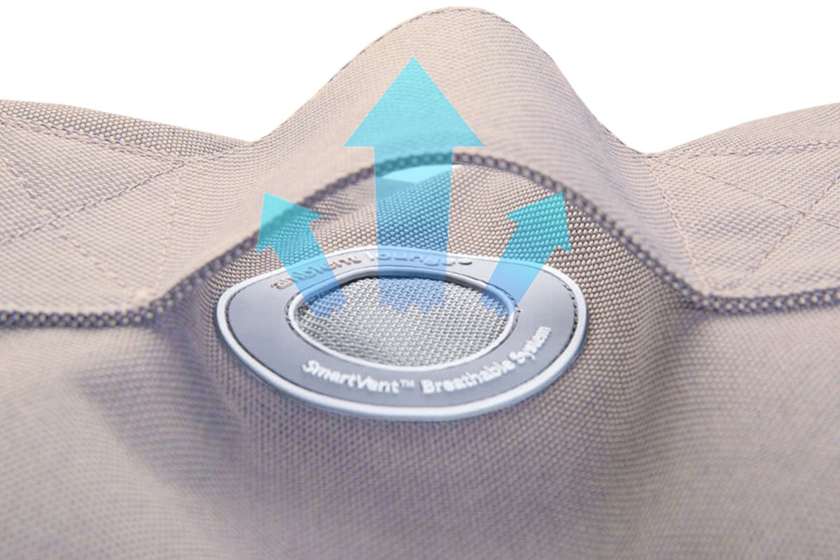 • SmartVent™ (breathable Air Vent System): pushes air out for body moulding comfort