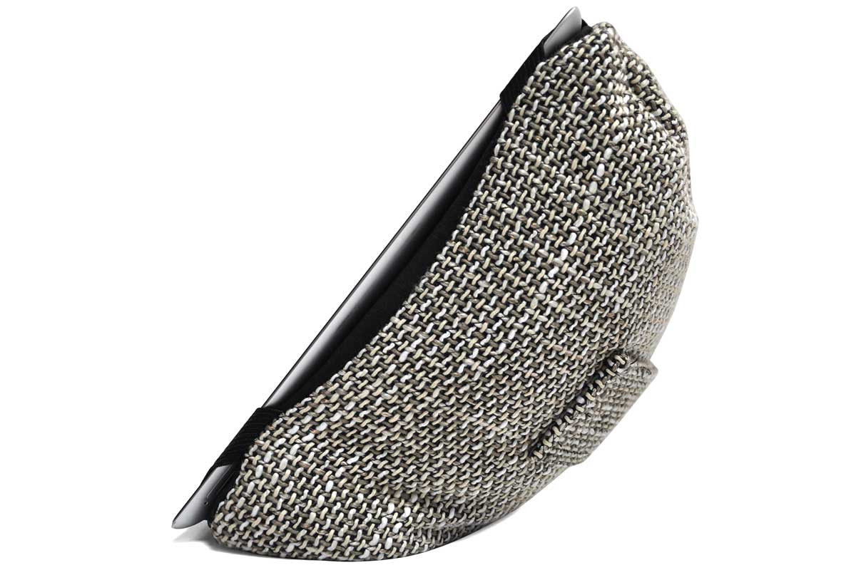 A must-have accessory in luxurious cream fabric and special micro bead filling, this 3-in-1 designer iPad case is ingenious geek chic.